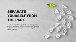 A thought leadership plan should deliver real value to audiences, providing the education and answers they seek, backed by industry insights, and all-you-need-to-know information about the services and products offered – ultimately establishing oneself as a reputable brand. When executed well, thought leadership is a valuable marketing tactic that can significantly impact brand awareness and help you take your business to the next level.